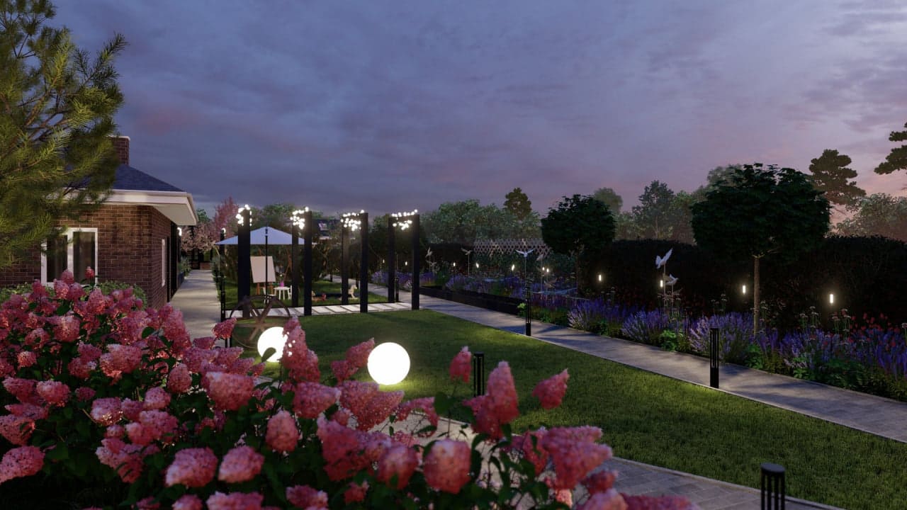 Разработка схемы ландшафтного освещения, прокладка кабелей, установка светильников